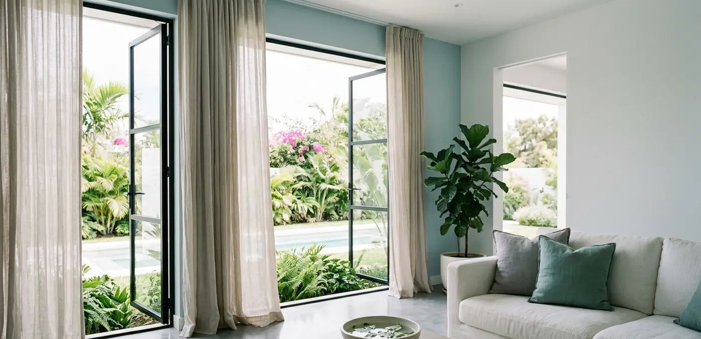 - El Efecto Venturi (Ventilación Cruzada): No basta con abrir una ventana. El truco de experto es abrir la ventana por donde entra el aire (una apertura pequeña) y una en el lado opuesto (apertura grande). Esto crea una corriente de succión que expulsa el aire caliente estancado.