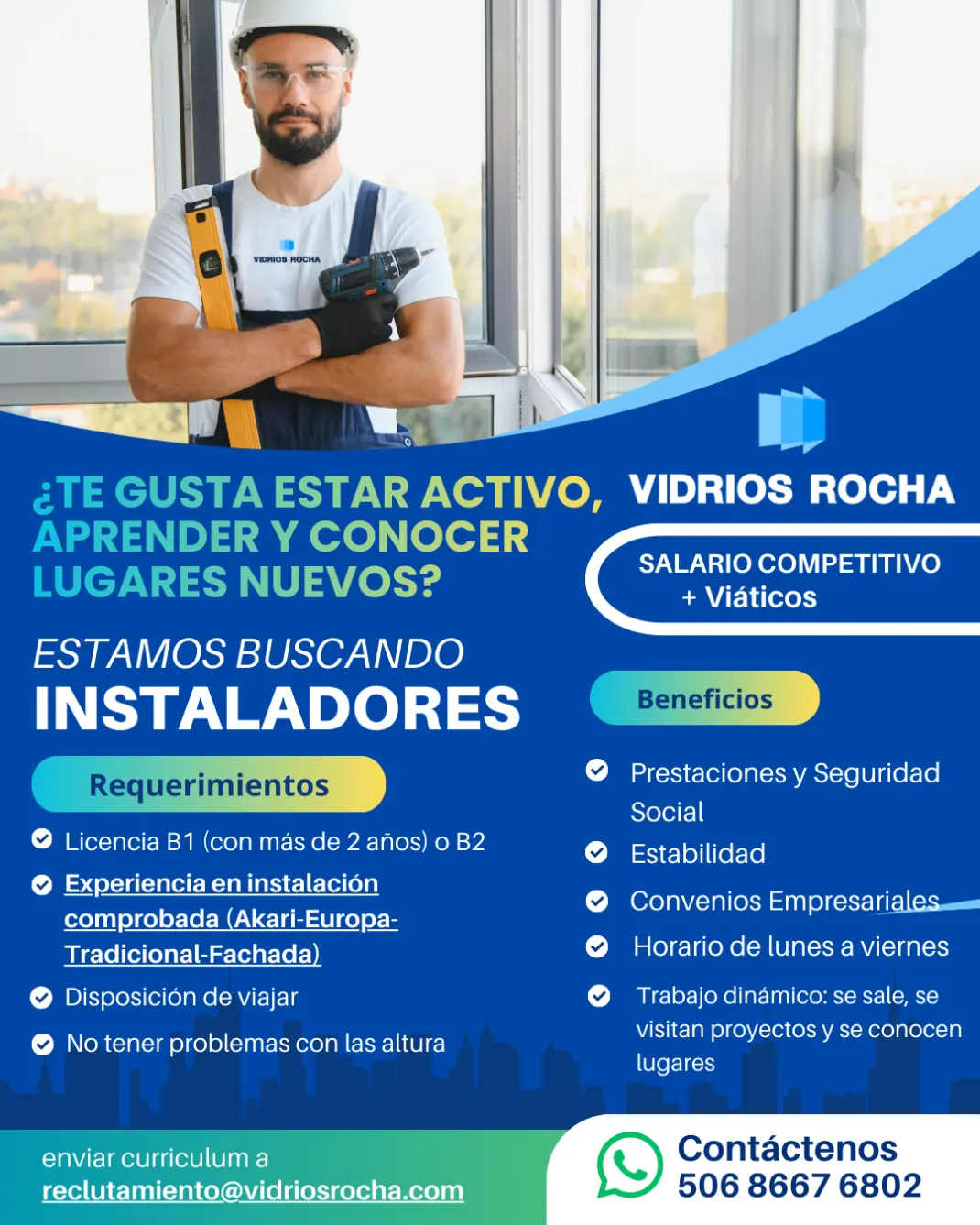 • Experiencia en instalación (ideal vidrio/aluminio o construcción)